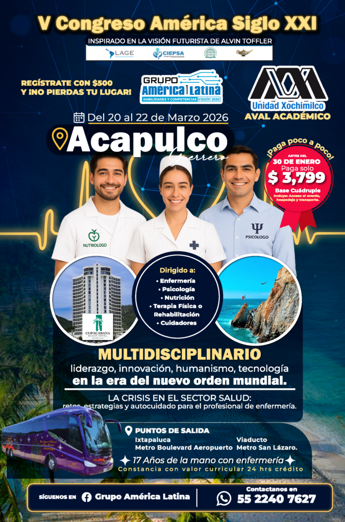 GRUPO AMERICA LATINA es una empresa de capacitación ejecutiva, dirigida a profesionales de enfermería en todos los niveles de atención y estudiantes en formación, principalmente para todos aquellos que tienen ese deseo de superación que puede mover incluso montañas; Como grupo hemos tomado el rol de una herramienta que fomenta y ayuda al desarrollo de habilidades necesarias para el fortalecimiento y sustento de una sociedad responsable, comprometida con una superación no solo personal sino también de su entorno en general, actuando como principal fomentador y agente del cambio en su área laboral, familiar y social.